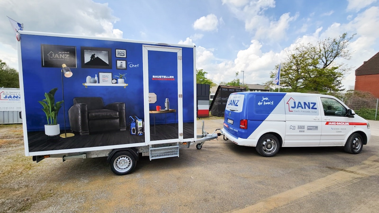 Mit einer Sitzecke und einer separaten Toilette ist unser Pausenraum-Anhänger der perfekte Ort für eine entspannte Pause auf der Baustelle.